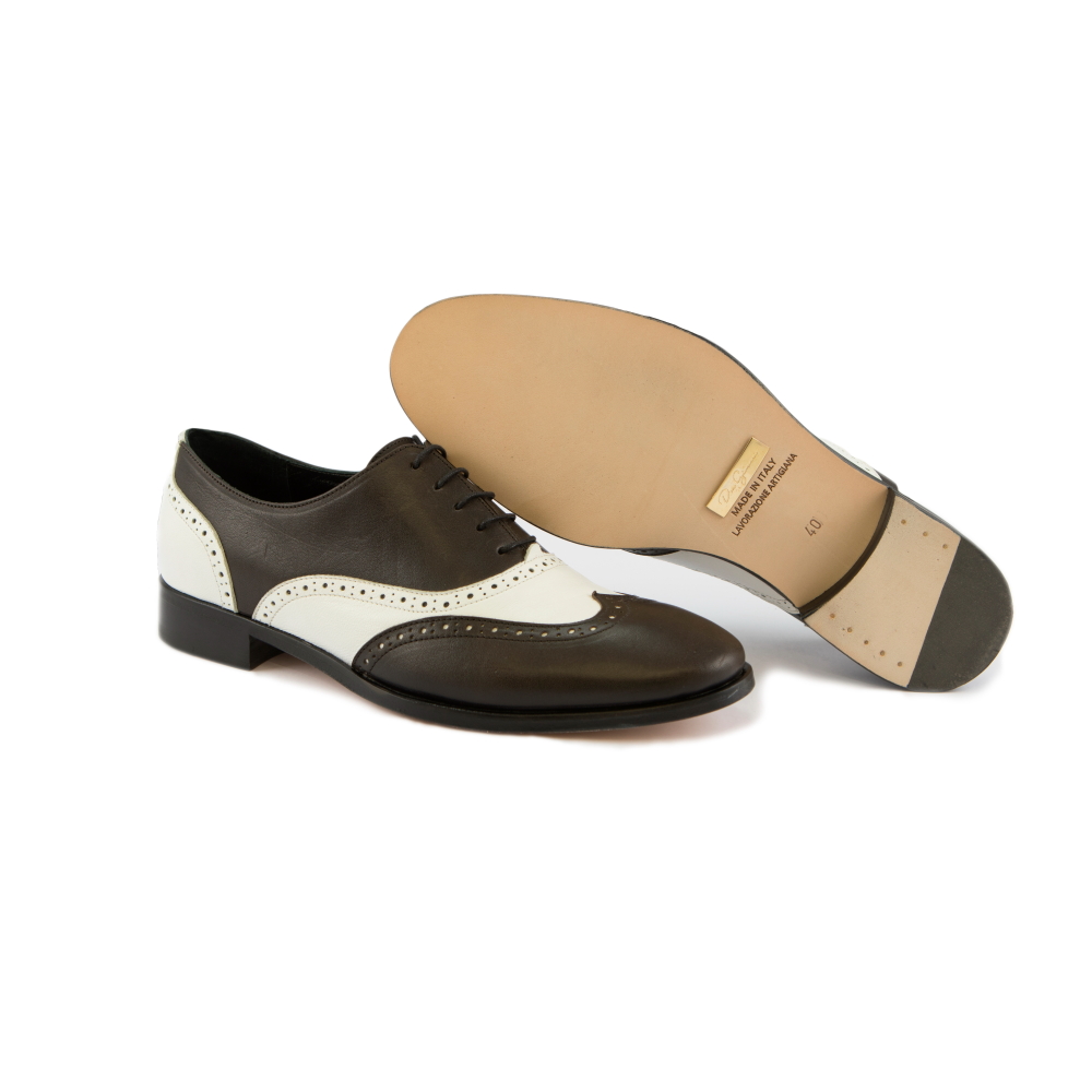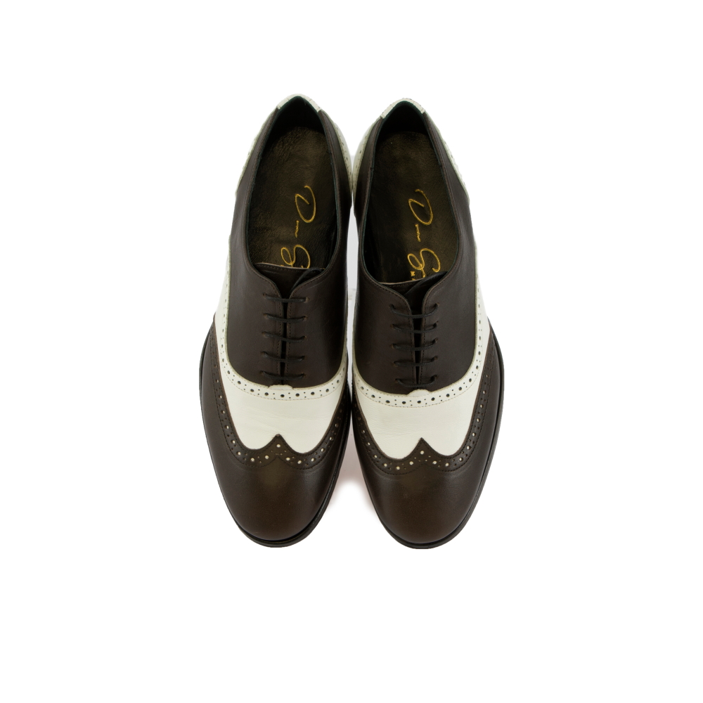 Scarpe stringate con lacci Carlitos : classiche ed eleganti. La loro chiusura con lacci le rendono ideali per essere indossate in occasioni speciali . Sono realizzate in vera pelle VITELLO BICOLORE TESTA DI MORO E VITELLO BIANCO con foratura all’ inglese